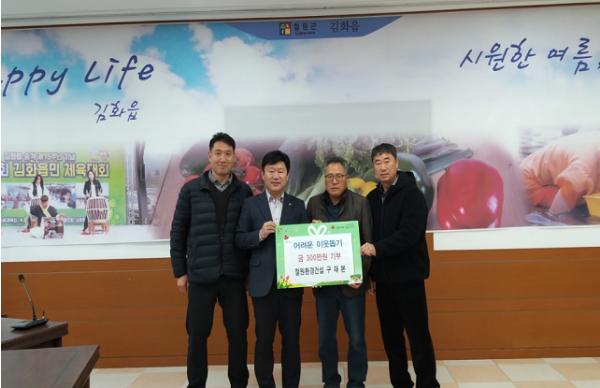 철원환경건설(대표:구재본)은 3월10일(화) 김화읍사무소를 방문해 저소득가구를 위해 불우이웃돕기 성금 300만원을 전달했다. 구재본 대표는 매년 이웃을 위해 꾸준한 기부를 하고 있는데 전년도에는 생활이 어려운 노인부부를 위해 매달 10만원씩 생활비를 지원하는 등 이웃에 대한 남다른 애정을 실천하였다. 이번에도 성금300만원을 기부하여 복지사각지대 및 취약계층 15가구(20만원씩)에게 난방비 및 생활비를 지원하고 싶다며, 작은 정성이지만 소중하게 쓰이길 바란다는 소박한 바람을 전했다.