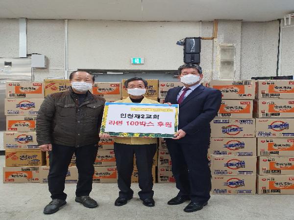 인천 미추홀구(구청장 김정식) 숭의1,3동 행정복지센터는 지난 10일 인천제2교회가 라면상자 100개를 기탁했다고 11일 밝혔다.