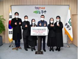 중랑구(구청장 류경기)는 지난 10일 2차례의 후원금 기탁식을 가졌다. 코로나19를 함께 이겨내고자 하는 ‘중랑구 천주교 신내동 성당’과 ‘면목본동 주민자치회’의 마음이 중랑구청에 릴레이로 전달됐다.