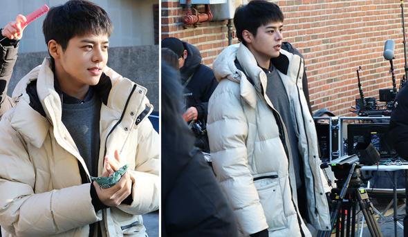 공개된 사진 속에서 려운은 패딩을 입고 촬영을 기다리는 모습이다.