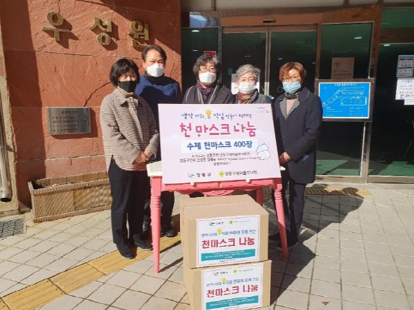 한편 강동구는 지난 11일 강동구새마을부녀회와 함께 제작한 어른용 천 마스크 400개를 교체 필터 800매와 함께 관내 장애인 복지시설 우성원에도 전달했다.