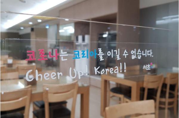 이에앞서, 구는 청사 출입 시 발열체크, 엘리베이터 버튼 항균필름 부착, 손소독제 비치, 구내식당 테이블마다 코로나19 극복 응원메시지가 부착된 투명 가림막 설치 등으로 직원과 구청 방문 민원 안전에 세심하게 신경 써 왔다.