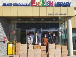 완주군 둔산영어도서관이 ㈜옴니시스템 사회공헌사업으로 기증받은 도서를 관내 사회복지시설에 전달했다.