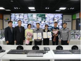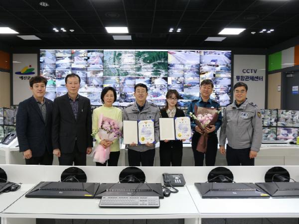 예산군 CCTV통합관제센터에 근무 중인 관제요원 2인이 예산경찰서 경찰서장으로부터 12일 지역치안 및 군민 생활안전 협력 공로로 표창장을 수상했다.