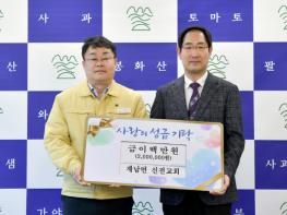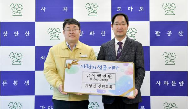 11일 계남면 신전교회(목사 박창석)가 군청에 사랑의 온정이 담긴 기부금(200만원)을 전달했다.