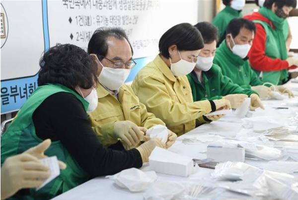 5일에는 면 마스크 제작 현장에 깜짝 등장했다. 부산시는 부산시새마을부녀회와 함께 필터 교체형 면 마스크를 제작 중이다. 이 자리에서 오 시장은 현장 자원봉사자들을 격려하고, 직접 마스크를 만들기도 했다. 여기서 제작된 마스크 3,000매는 지난 5일 부산시 장애인복지시설협회에 전달됐다. 앞으로도 부산시는 마스크 확보가 어려운 취약계층에 이를 배부할 계획이다.