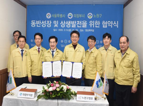 이와 관련해 지난 13일 의정부시청에서 오승록 노원구청장, 박원순 서울시장, 안병용 의정부시장은 영상회의를 통해 ‘동반성장 및 상생발전’을 다짐하는 업무 협약을 맺었다.