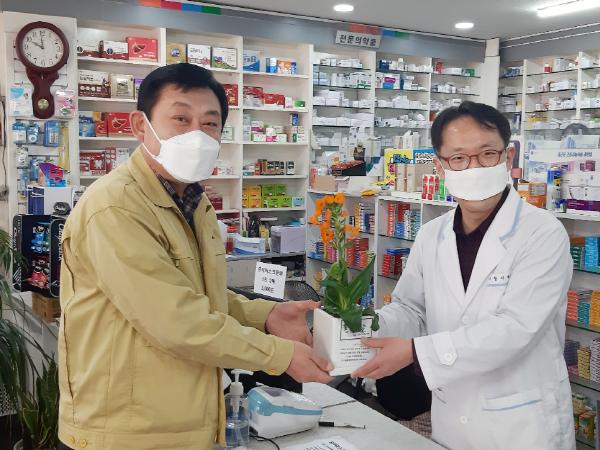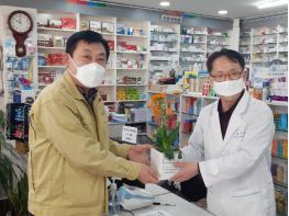 대전 서구(구청장 장종태) 가수원동(동장 박교순) 행정복지센터 직원들은 정성껏 모은 성금으로 지난 13일 관내 약국 종사자들에게 봄꽃 화분을 전달했다.