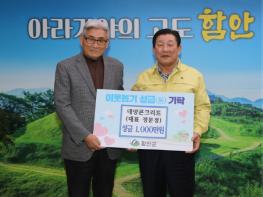함안군 대산면 소재 대양콘크리트(대표 정문정)는 지난 13일 군청을 방문하여 코로나19 예방을 위한 특별 성금 1000만원을 기탁했다.