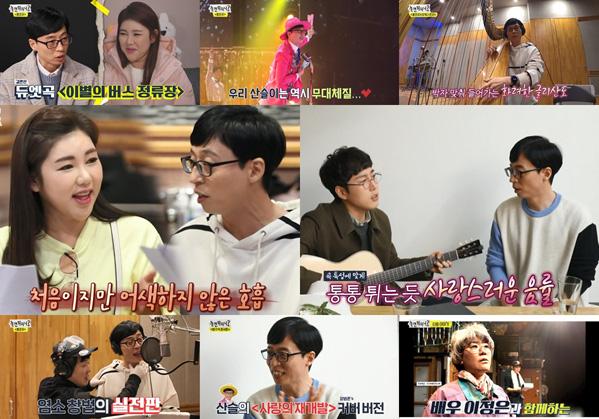 지난 14일 방송된 MBC ‘놀면 뭐하니?’(연출 김태호 김윤집 장우성 왕종석)에는 유산슬이 송가인과 듀엣송 ‘이별의 버스 정류장’을 녹음하며 컴백을 준비하는 모습이 공개됐다.