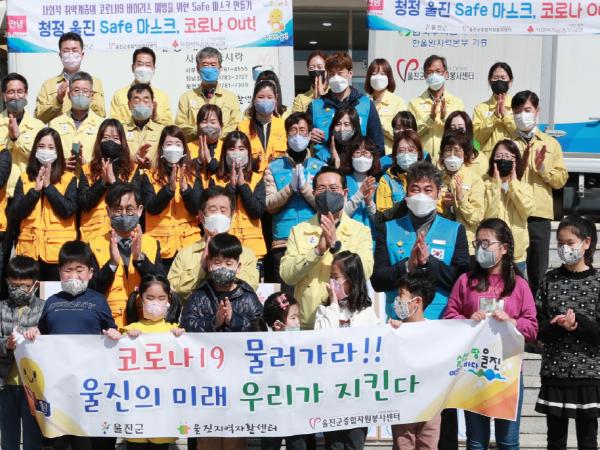 울진군자원봉사센터(소장 김덕열)와 지역자활센터(센터장 황천호)에서는, 면마스크 총 6,500매를 제작하여 관내 유치원, 초중고 학생에게 개학시 학교에서 면마스크 지급하고 추가 제작하여, 관내 어린이집 아동 1,150명 대상 2,300매(1인2매) 배부한다.