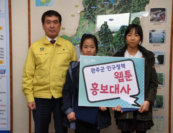 완주군의 어린이들이 인구정책 웹툰 홍보대사로 활동한다.