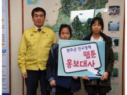 홍보대사는 2019년 ‘완주군 인구정책 아이디어 웹툰 공모’ 우수작을 출품한 김다인 양(11세)과 김수인 양(12세)이다.