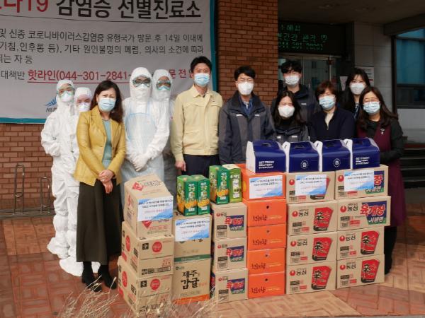 세종특별자치시 전의면에 위치한 ㈜포스코케미칼(사장 민경준)이 17일 코로나19 감영증 지역사회 전파 차단 및 방역 활동에 매진하고 있는 세종시 보건소 직원들을 위해 격려물품을 쾌척했다.