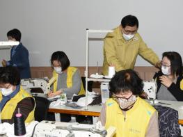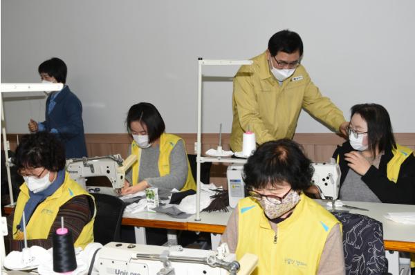 자원봉사센터에서는 자원봉사자 모집과 재료비를 지원하고, 코로나19로 개강을 연기한 평생학습가족관에서는 홈패션실을 개방해 자원봉사자들이 면 마스크를 제작하도록 돕고 있다.