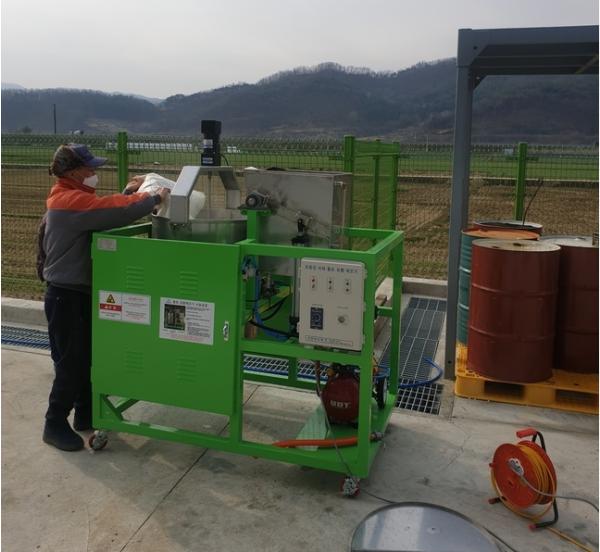 이번에 설치된 친환경 황토유황제조기는 경북농업기술원에서 개발하여 황토유황 제조의 어려움을 해소하기 위해 재료인 유황과 가성소다, 황토, 천매암, 천일염을 넣고 교반 버튼 조작만으로 간단히 황토유황을 만들 수 있도록 제작됐다.