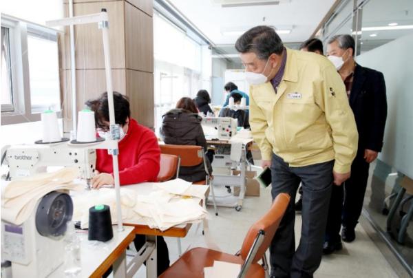 이에 군 자원봉사센터는 재봉틀 3대를 추가로 구입하고 평생학습관의 재봉실(재봉틀13대)을 개방했으며, 집에 재봉틀이 있는 봉사자들은 자택에서 마스크를 만들어 오는 등 마스크 제작에 힘써, 지난 주까지 차상위 독거노인 150명에게 300매의 면 마스크를 전달했으며, 지난 17일에는 참전용사?한부모가정?요양병원?요양원에 650매의 면 마스크를 제작?기부했다.