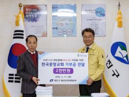 구는 이 날 전달받은 기부금으로 마스크 2만개를 구매해 지역 내 취약계층에게 전달할 계획이다.