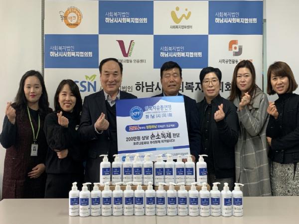이날 전달식에는 강성대 회장을 비롯하여 유희선 사회복지협의회장 및 임원진들이 참석했으며, 한국자유총연맹 하남시지회에서 마련한 손소독제 200개를 사회복지협의회에 전달했다.