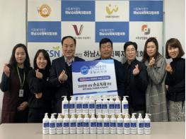 한국자유총연맹 하남시지회(회장 강성대)는 지난 17일 하남시 사회복지협의회 사무실에서 코로나19 바이러스 확산 방지를 위한 손소독제 전달식을 가졌다고 밝혔다.