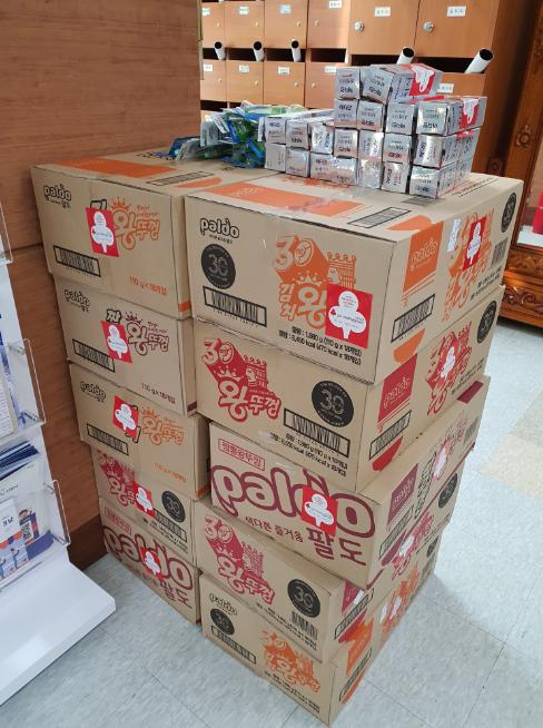 양산시 동면 관내 GS25편의점 양산반도6차점(동면 금오13길 38, 반도유보라6차 아파트 상가동 106호) 대표(송성훈)가 코로나19로 어려움을 겪고 있는 관내 이웃들을 위해 40만원 상당의 후원품(컵라면 10박스, 치약20개, 칫솔 20개)을 지난 17일 동면행정복지센터에 기탁하였다.