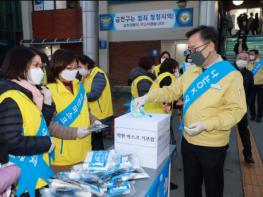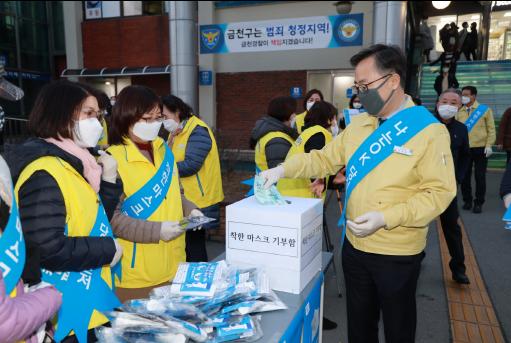 금천구(구청장 유성훈)가 3월 18일(수) 오후 6시 금천구청역 앞에서 코로나19 극복을 위한 ‘착한 마스크’캠페인을 진행했다.