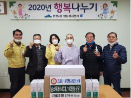 주지 과진스님은 “코로나19 확산으로 힘든 시기에 이웃들에게 위로와 응원이 전해지길 바란다.”고 말했고, 휴대용 손소독제는 감염병 예방을 위해 관내 저소득 취약계층에 직접 배부될 예정이다.