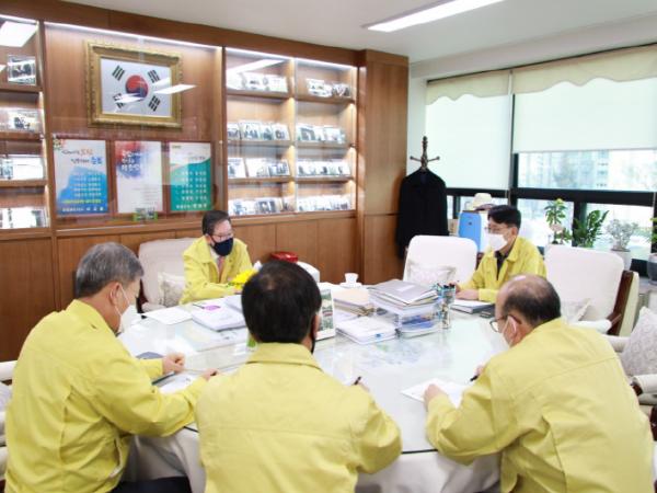 박세복 영동군수가 17일 코로나19 긴급대책 회의에서 정부의 3차 개학 및 휴원 연장 발표에 따라 다시 한번 아이들을 꼼꼼히 살펴볼 것을 지시했다.