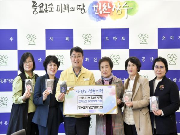 장수군여성단체협의회(회장 김옥이)는 코로나19 바이러스 감염 예방을 위해 필터형 면 마스크 1,000개를 장수군에 기탁했다.