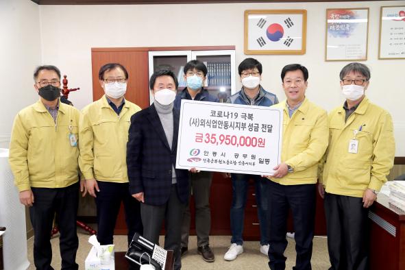 시는 이러한 상황을 타개하기 위해 16일부터 17일까지 안동시와 안동시 공무원노동조합이 공동으로 모금한 성금 3,590만 원을 (사)한국외식업중앙회 안동시지부에 전달했다. 안동시지부에서는 3,500만 원을 더 보태 총 7천여만 원으로 지역의 친환경 농산물을 구매해 업소에 제공하기로 했다.