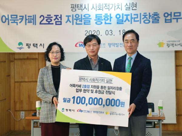 이번 한국서부발전(주)에서 전달된 후원금 1억원은 지역사회 사회공헌 후원 기부금으로 소외계층의 일자리 창출 및 수제어묵카페 북부지역 1호점에 이어 남부지역 2호점 개소에 사용된다.