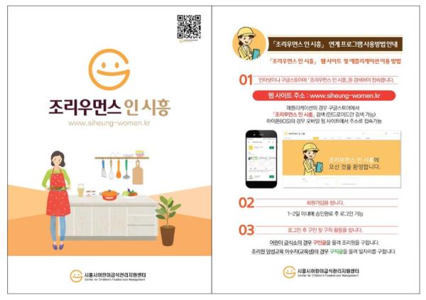 조리원 양성 교육 과정 「조리우먼스 인 시흥」은 시흥시 보건소, 시흥여성인력개발센터와 협력해 조리 및 급식 분야로 취업을 희망하는 여성, 어린이 급식소에서 필요한 이론 및 실무능력의 향상을 희망하는 여성 등을 대상으로 어린이 급식소 위생·안전 및 영양관리 항목에 대한 이론·실습 교육으로 구성된 프로그램이다.