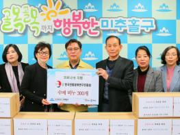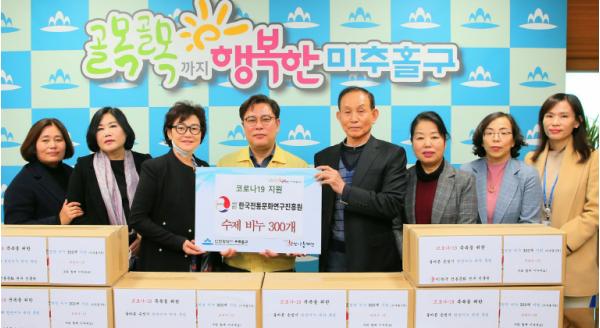 인천 미추홀구는 20일 (사)한국전통문화연구진흥원이 기탁한 수제비누 300개를 학산나눔재단에 전달했다.