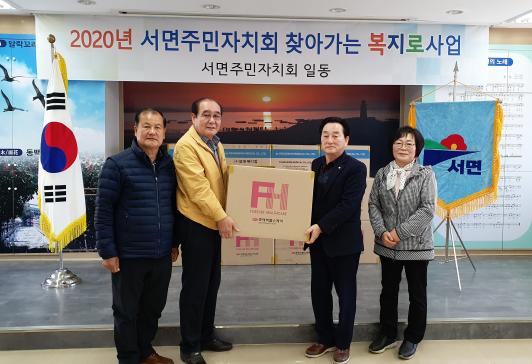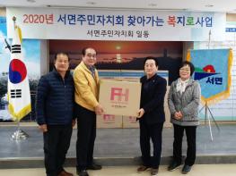 이날 자치회는 서면 주민들이 마을회관에서 이용할 수 있는 공기압 마사지기를 각 마을 이장을 통해 배부했다.