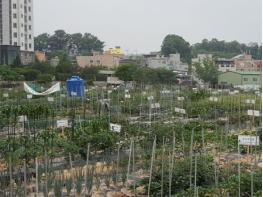 도시농장 텃밭가꾸기 사업은 도심에 텃밭을 조성하고 이를 시민들에게 소규모로 임대해 농사체험의 기회를 제공하고 이를 활용하여 노인일자리를 창출하는 사업으로 텃밭 1구좌는 16.5㎡(5평)로 연간 사용금액은 50,000원이며 상추, 배추, 고추. 토마토 등 원하는 작물을 가꿀 수 있다.