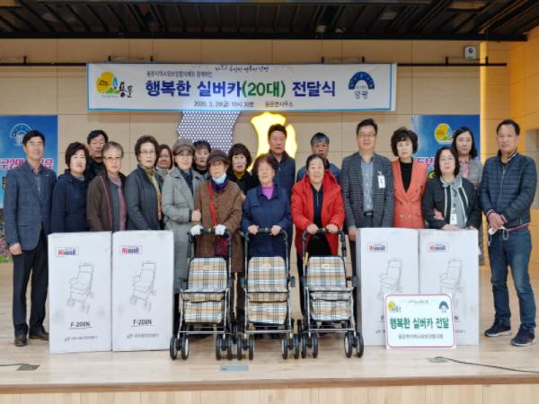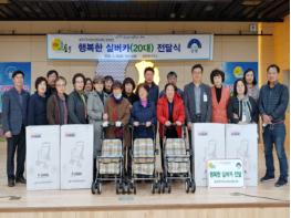 양평군 용문면 지역사회보장협의체(위원장 이은숙)는 지난 20일 용문면사무소 대강당에서 ‘용문면지역사회보장협의체와 함께하는 행복한 실버카 전달식’을 통하여 관내 거동이 불편한 취약계층 어르신들에게 전달되길 바라며 실버카 20대를 후원하였다.
