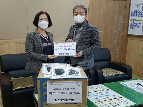 부평구(구청장 차준택)일신동은 지난 21일 동 기업인회로부터 마스크 1천 매를 기탁 받았다.
