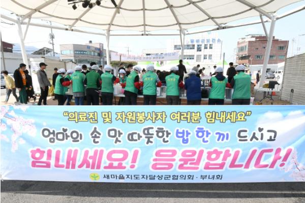 달성군새마을회는 3월 24일, 코로나19 차단을 위해 애쓰고 있는 보건소 직원들과 의료진, 자원봉사자들을 격려하기 위해 비빔밥 130인분을 제공했다.