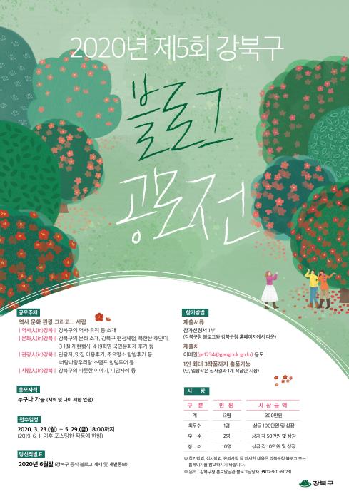 강북구(구청장 박겸수)는 지역의 다양한 매력이 담긴 이야기를 발굴하고 시민들과 공유하기 위해 ‘제5회 강북구 블로그 공모전’을 실시한다.
