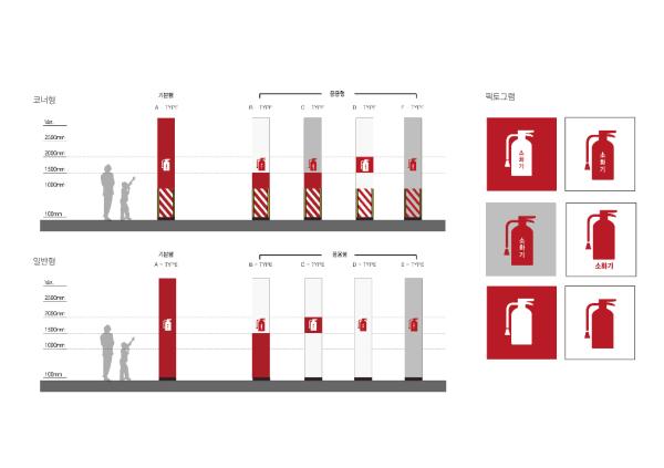 특히 건축물에 공통으로 표시되는 장애인 및 임산부전용 주차구역, 차량 운전자가 출구로 인지하지 못하고 진입할 위험이 있는 출구 진입금지 표시, 소화기와 비상벨 위치표시 등에 대한 안내표지 가이드라인을 제공한다.
