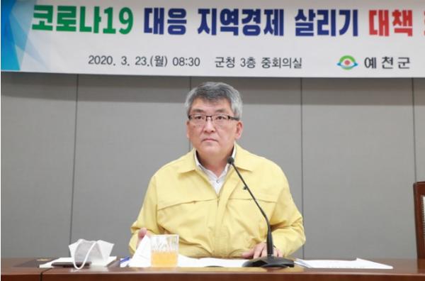 김학동 예천군수는 "코로나19 확진자 제로화를 위한 방역활동은 지속적으로 이어가고 이제는 수습하기 위한 방안도 심각하게 고민해야하는 시기”라면서“경제적 타격을 입은 군민들에게 도움이 되는 시책을 발굴해 내고 모든 행정력을 모아 지역경제 회복에 최선을 다해야 할 것”이라며 강도 높은 주문을 했다.