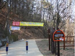 군은 24일 향수호수길 진입로(선사공원, 주막마을) 등에 임시 휴장을 알리는 현수막을 긴급 게첨했다.