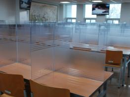 구내식당 투명 칸막이 설치는 많은 인원이 몰리는 점심시간에 직원들 간 접촉을 피하고 감염요인을 사전에 차단하기 위한 조치이다.