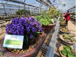 약초 전시·제험장에는 봄을 맞아 꽃을 피운 할미꽃과 제비꽃, 설앵초, 돌단풍 등을 비롯해 지리산 자락 산청군 지역에서 자생하는 300여종의 약초가 전시돼 있다.