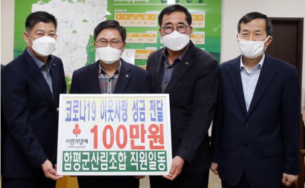이날 기탁된 성금은 함평군산림조합 전 직원이 십시일반 모은 금액으로, 이날 오후 전남사회복지공동모금회에 전달돼 코로나19로 피해를 입은 지역민들을 위해 쓰일 예정이다.