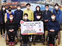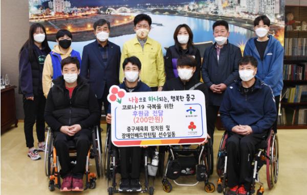명일식 중구체육회장은 “코로나19로 어려움을 겪고 있는 중구 지역의 어려운 이웃들에게 조금이나마 도움이 되고자 직원 및 선수들이 십시일반 성금을 모았다”면서 “적은 금액이지만 취약계층에게 힘이 됐으면 한다”고 말했다.