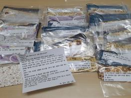 ‘한 동네 사람’이라고 밝힌 기부자는 “어릴 적 한 동네 사는 사람끼리 서로 도우며 어려운 일들을 이겨내는 모습이 떠올라 작은 도움이 되고자 마스크를 만들게 되었으며 하루 빨리 코로나 19가 종식되었으면 좋겠다.”고 응원의 메시지도 함께 전했다.