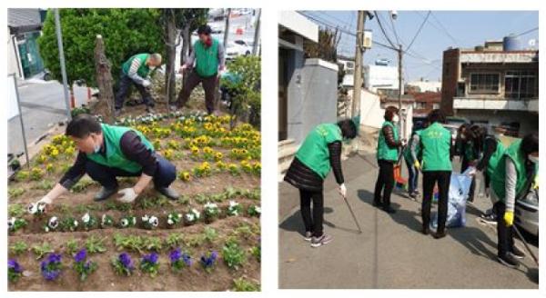 특히 새마을지도자협의회는 새마을꽃동산, 지역 내 자투리땅과 화단에 봄 초화를 식재해 친환경 녹지공간을 조성하고 코로나19 지역 확산으로 실내 생활에 지친 주민들에게 잠시나마 봄기운과 활력을 불어넣어주는 심리적 방역을 실시했다.