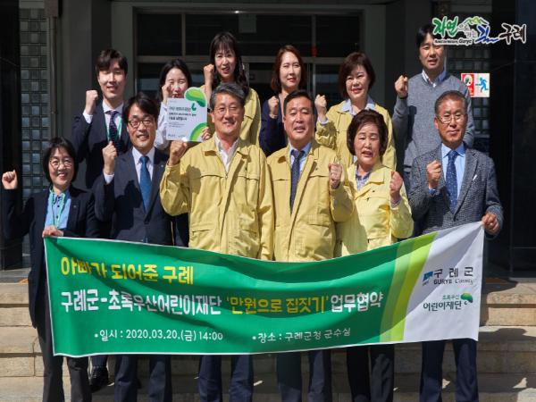 전남 구례군(군수 김순호)은 20일 초록우산 어린이재단 전남지역본부(이하 어린이재단)와 빈곤아동의 주거 지원을 위해「만 원으로 집 짓기」나눔 캠페인 협약을 체결했다고 밝혔다.