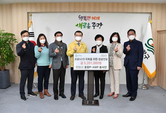 ‘중랑 P-AMP 봉사단’은 배움의 과정에서 느낀 기쁨과 나눔의 실천을 연계하고자 지난해 말 구성되었다. 코로나19 확산에 따른 사회적 거리두기 동참으로 봉사활동 진행이 어려워지자, 국가적 재난 상황에서 조그마한 정성이라도 모아보자는 의견에 따라 봉사단원과 원우회원이 십시일반 성금을 모았다.